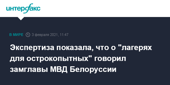 "Сегодня независимая экспертиза, выполненная российским бюро "ГлавЭксперт" по запросу портала tut.by, доказала, что голос на записи о "лагерях" для белорусов, "лишних людях" а также убийстве Александра Тарайковского (первый погибший на протестах в Белоруссии - ИФ) принадлежит Николаю Карпенкову (замминистра МВД республики - ИФ)", - говорится в телеграм-канале экс-кандидата в президенты Белоруссии Светланы Тихановской.