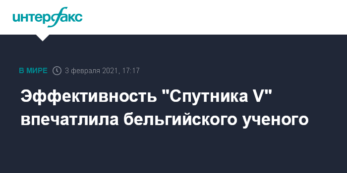 "Это все же замечательно. Когда мы видим эффективность других вакцин того же типа (а именно аденовирусных), как AstraZeneca при эффективности от 60 до 70% ... и Johnson и Johnson с ее 66%, это доказывает, что у них (России - ИФ) есть замечательное ноу-хау", - заявил бельгийский эксперт в среду в интервью телеканалу RTBF.