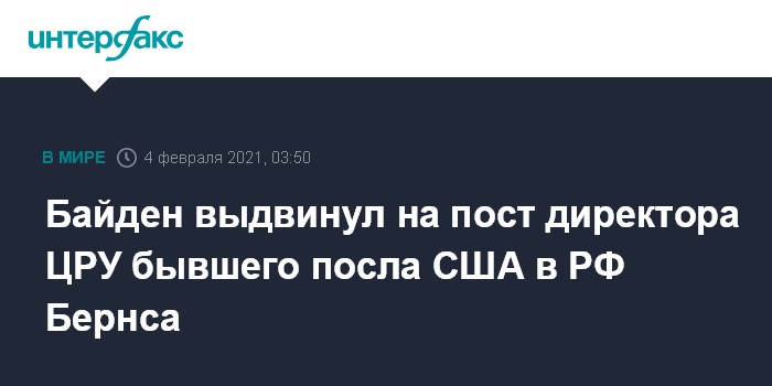 Москва. 4 февраля. INTERFAX.RU - Президент США Джо Байден выдвинул на утверждение в Сенат на пост директора ЦРУ кандидатуру Уильяма Бернса, сообщил Белый дом.