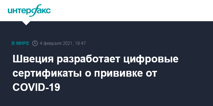 Москва. 4 февраля. INTERFAX.RU - Власти Швеции собираются разработать цифровые сертификаты о вакцинации от коронавируса, сообщает радиостанция Radio Sweden со ссылкой на министра цифрового развития страны Андерса Игемана.