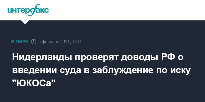 Нидерланды проверят доводы РФ о введении суда в заблуждение по иску "ЮКОСа"