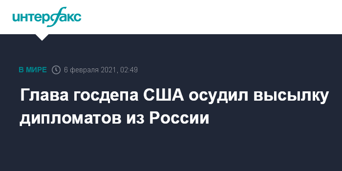 Москва. 6 февраля. INTERFAX.RU - Решение России выслать трех европейских дипломатов – неоправданное и нарушает международные обязательства, заявил глава госдепа США Энтони Блинкен.
