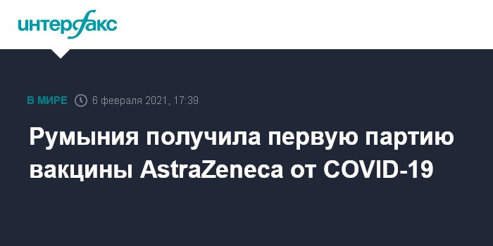 Москва. 6 февраля. INTERFAX.RU - В Румынии в субботу получили первую партию вакцины из 81,6 тыс. доз против коронавируса компании AstraZeneca, которую будут вводить гражданам от 18 до 55 лет, передают западные СМИ.