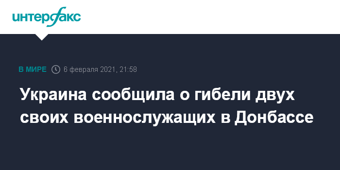 Украина сообщила о гибели двух своих военнослужащих в Донбассе