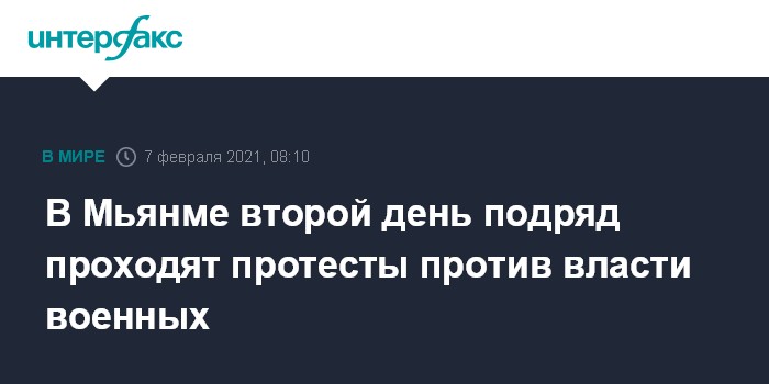 В Мьянме 1 февраля произошел военный переворот. Власть перешла к главнокомандующему вооруженными силами Мин Аунг Хлайну, а исполняющим обязанности президента был назначен вице-президент Мьинт Шве. Военные объявили чрезвычайное положение сроком на один год и задержали государственного советника Мьянмы Аун Сан Су Чжи, президента Вин Мьина и других высокопоставленных чиновников за "фальсификацию выборов" 8 ноября 2020 года.