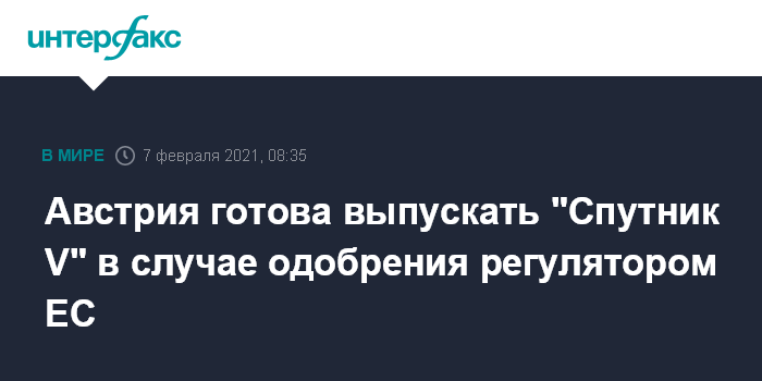 Москва. 7 февраля. INTERFAX.RU - Австрия готова организовать производство российских или китайских вакцин от коронавируса, а также препарата из любой другой страны, получивших одобрение Европейского агентства по лекарственным препаратам (ЕМА), заявил австрийский канцлер Себастьян Курц.