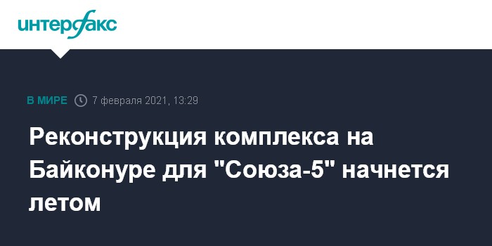 Москва. 7 февраля. INTERFAX.RU - Реконструкция стартового комплекса для запуска ракеты-носителя среднего класса "Союз-5" начнется летом 2021 года, сообщил в воскресенье глава "Роскосмоса" Дмитрий Рогозин.