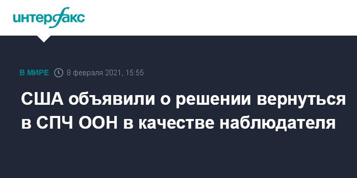 Москва. 8 февраля. INTERFAX.RU - Вашингтон вернется в Совет по правам человека ООН в качестве наблюдателя, говорится в заявлении госсекретаря США Энтони Блинкена.