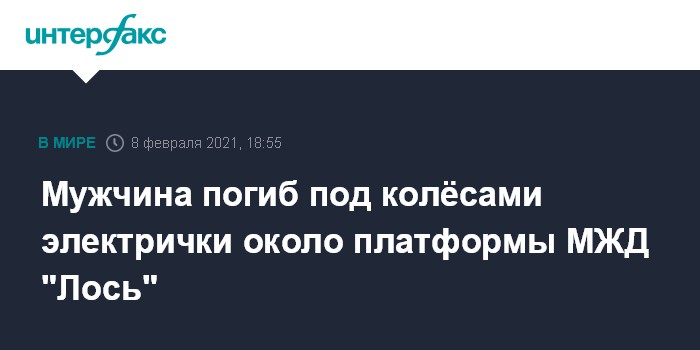 Москва. 8 февраля. INTERFAX.RU - Мужчина погиб в районе железнодорожной платформы "Лось" Ярославского направления Московской железной дороги (МЖД), попав под колёса электрички.