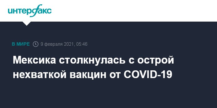 Лопес Обрадор заявил, что поставки вакцины Pfizer возобновятся к 18 февраля. По его словам, еще около 1 млн доз вакцины AstraZeneca, произведенных в Индии, скорее всего, прибудут к концу текущей недели.