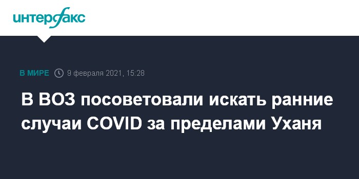Москва. 9 февраля. INTERFAX.RU - Следующим шагом миссии Всемирной организации здравоохранения (ВОЗ), цель которой - установить источник COVID-19, должны стать поиски доказательств более раннего распространения коронавируса вне Уханя, заявила эксперт ВОЗ Марион Купманс.