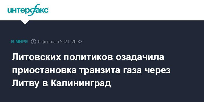 Москва. 9 февраля. INTERFAX.RU - Литовские эксперты и политики выдвинули ряд предположений о причинах временной приостановки "Газпромом" транзита газа через Литву в Калининградскую область.