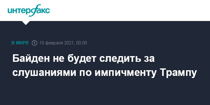 Москва. 9 февраля. INTERFAX.RU - Президент США Джо Байден во вторник заявил, что не собирается смотреть слушания в сенате по делу об импичменте экс-президенту страны Дональду Трампу.