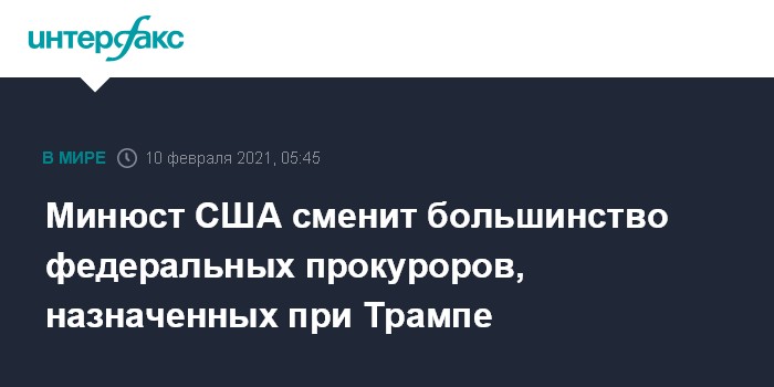 Москва. 10 февраля. INTERFAX.RU - Президент США Джо Байден и министерство юстиции приступили к смене состава федеральных прокуроров, назначенных на эти посты предыдущей администрацией.
