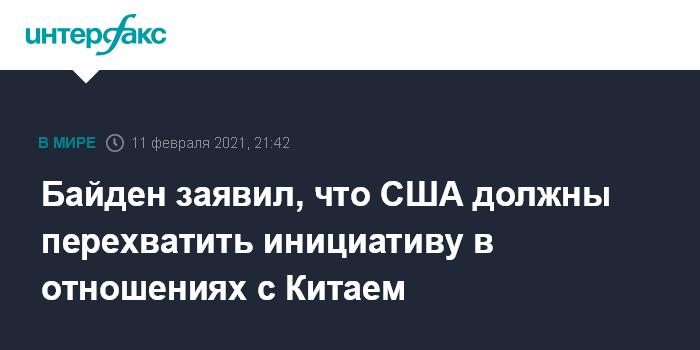 Москва. 11 февраля. INTERFAX.RU - Американские власти должны проявить инициативу в отношениях с Китаем, заявил президент США Джо Байден после телефонного разговора с председателем КНР Си Цзиньпином.