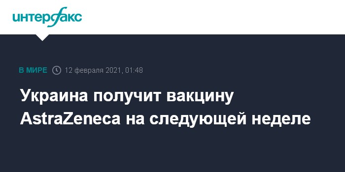 Москва. 11 февраля. INTERFAX.RU - На следующей неделе Украина может получить вакцину против коронавируса фирмы AstraZeneca, сообщил главный санитарный врач Виктор Ляшко в эфире ток-шоу "Право на владу" на телеканале "1+1" в четверг вечером.