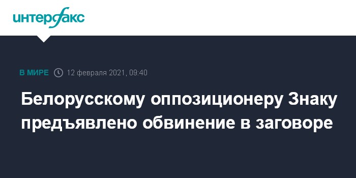 Москва. 12 февраля. INTERFAX.RU - В Белоруссии члену президиума Координационного совета оппозиции адвокату Максиму Знаку предъявлено обвинение в заговоре с целью захвата власти неконституционным путем (ч. 1 ст. 357 УК) и в создании экстремистского формирования (ч. 1 ст. 361-1 УК), написал в Telegram адвокат Знака Дмитрий Лаевский.