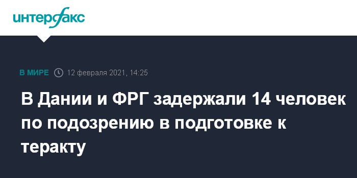 Москва. 12 февраля. INTERFAX.RU - Сотрудники полиции Дании и Германии объявили в пятницу о задержании 14 человек, подозреваемых в подготовке теракта, сообщают европейские СМИ.