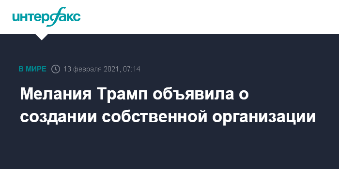 Москва. 13 февраля. INTERFAX.RU - Супруга бывшего президента США Мелания Трамп сообщила об открытии организации под названием "Офис Мелании Трамп", сказано в твиттере этой организации.