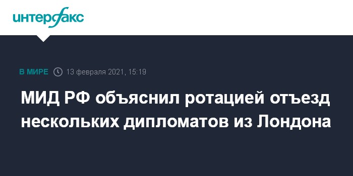 Москва. 13 февраля. INTERFAX.RU - Отъезд из Великобритании нескольких российских дипломатов вместе с семьями является плановым и проводится в рамках стандартной ротации кадров, заявили в МИД РФ в субботу.