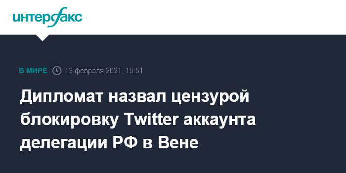 Москва. 13 февраля. INTERFAX.RU - Решение Twitter заблокировать аккаунт российской делегации на переговорах в Вене по безопасности и контролю над вооружениями является проявлением цензуры, заявил в субботу глава делегации Константин Гаврилов.