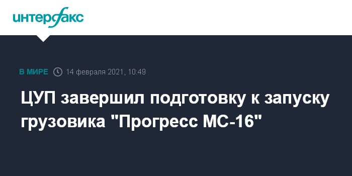 Москва. 14 февраля. INTERFAX.RU - Центр управления полетами (ЦУП) завершил плановые работы по подготовке к выведению на орбиту Земли транспортного грузового корабля "Прогресс МС-16" и его последующей стыковке к российскому сегменту Международной космической станции (МКС), сообщил в воскресенье "Роскосмос".