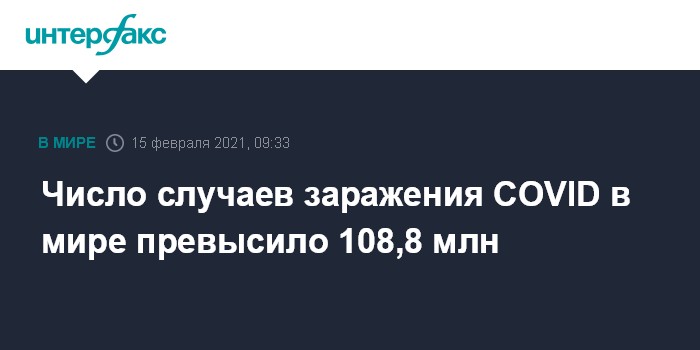 Москва. 15 февраля. INTERFAX.RU - Число выявленных случаев заражения коронавирусом в мире с начала пандемии на утро понедельника составило 108 812 060, свидетельствуют данные американского университета Джонса Хопкинса.