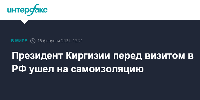 Москва. 15 февраля. INTERFAX.RU - Президент Киргизии Садыр Жапаров готовится к предстоящему визиту в РФ на самоизоляции по COVID-19, сообщила в понедельник "Интерфаксу" пресс-секретарь главы государства Галина Байтерек.