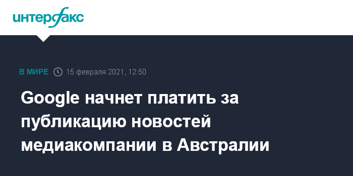 Google начнет платить за публикацию новостей медиакомпании в Австралии