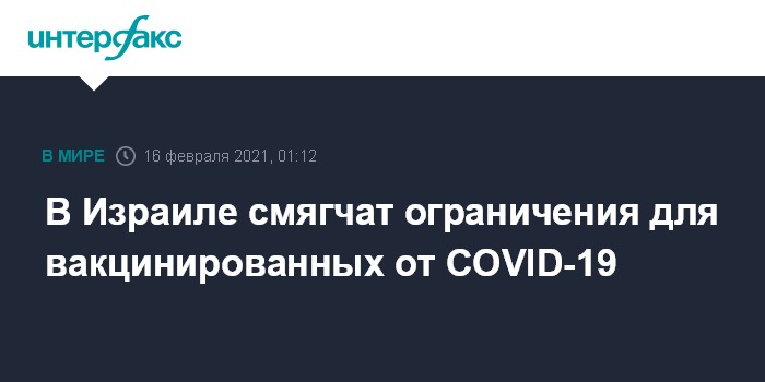 В Израиле смягчат ограничения для вакцинированных от COVID-19