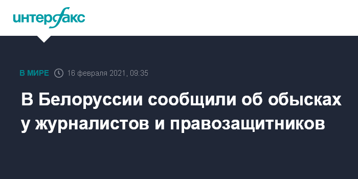 Москва. 16 февраля. INTERFAX.RU - Обыски проходят с утра вторника у руководителей Белорусской ассоциации журналистов (БАЖ), журналистов и правозащитников по всей Белоруссии.