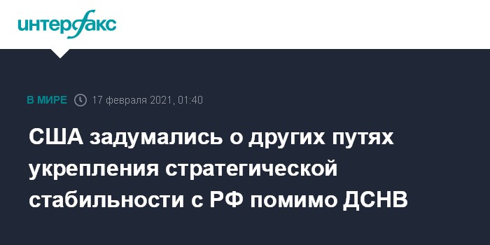 Москва. 17 февраля. INTERFAX.RU - США, помимо Договора о сокращении и ограничении стратегических наступательных вооружений (ДСНВ-3), рассмотрят другие пути продвижения стратегической стабильности с Россией, несмотря на имеющиеся разногласия, заявил госсекретарь США Энтони Блинкен.