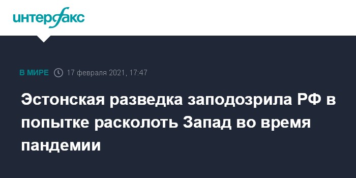 Москва. 17 февраля. INTERFAX.RU - Россия надеется, что пандемия коронавируса будет способствовать ослаблению единства стран Запада, считает департамент внешней разведки Эстонии.