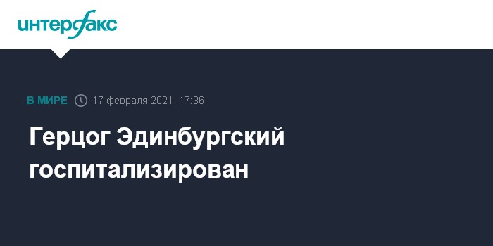 Москва. 17 февраля. INTERFAX.RU - В Лондоне госпитализирован 99-летний герцог Эдинбургский, супруг Елизаветы II, сообщает АР со ссылкой на пресс-службу Букингемского дворца.