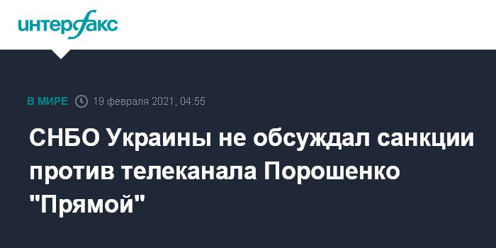 Москва. 19 февраля. INTERFAX.RU - На заседании Совета национальной безопасности и обороны (СНБО) не поднимался вопрос о санкциях против телеканала "Прямой", собственником которого является сопредседатель парламентской фракции "Европейская солидарность" Петр Порошенко, заявила пресс-секретарь президента Украины Владимира Зеленского Юлия Мендель.