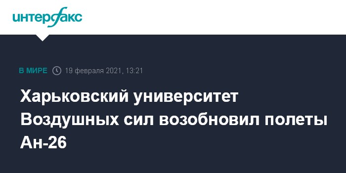 Москва. 19 февраля. INTERFAX.RU - Харьковский национальный университет Воздушных сил (ХНУВС) сообщил, что возобновил командирские тренировочные полеты на самолетах Ан-26.