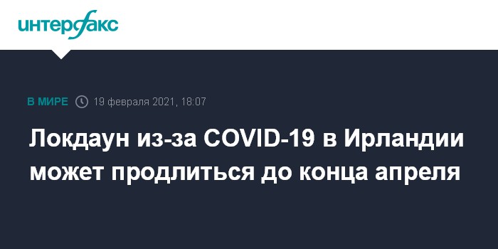 Локдаун из-за COVID-19 в Ирландии может продлиться до конца апреля