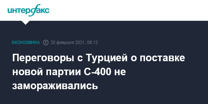 Глава ФСВТС России Дмитрий Шугаев в марте 2020 года в интервью "Интерфаксу" сказал, что Россия рассчитывает в обозримом будущем договориться о поставке Турции дополнительной партии С-400.