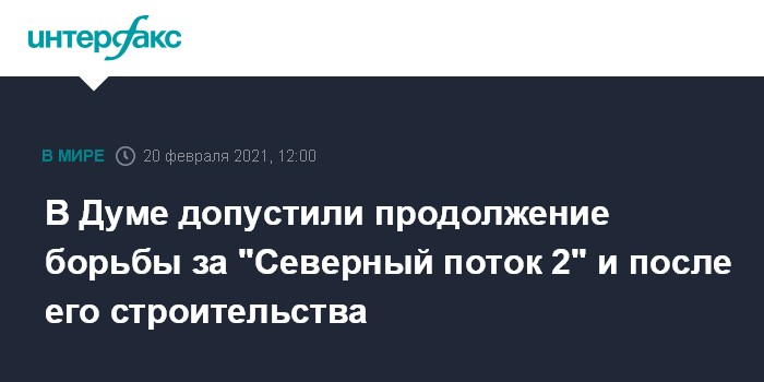 Москва. 20 февраля. INTERFAX.RU - Отказ от введения санкций по "Северному потоку 2" против европейских компаний естественен для курса президента США Джо Байдена на восстановление отношений с Евросоюзом, но борьба за газопровод продолжится и после его строительства, считает первый зампред комитета Госдумы по международным делам Дмитрий Новиков.