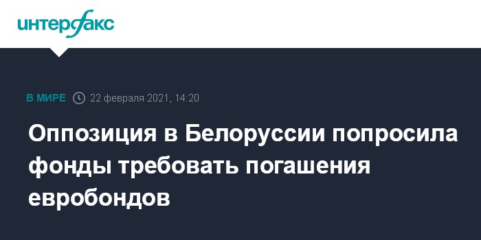 Москва. 22 февраля. INTERFAX.RU - Народное антикризисное управление белорусской оппозиции направило письма всем инвестфондам, которые держат белорусские бонды, с просьбой предъявить их к досрочному погашению, поскольку деньги с продажи пошли на "репрессии против народа".