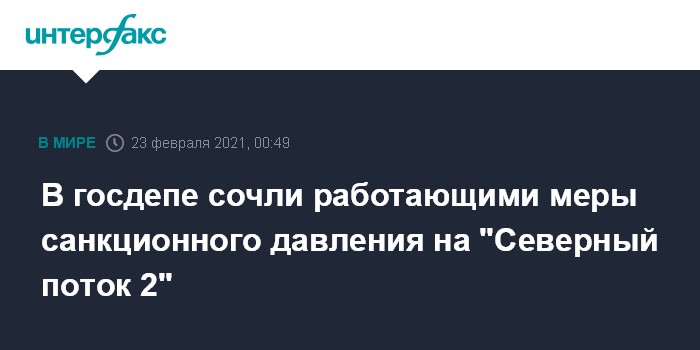 В госдепе сочли работающими меры санкционного давления на "Северный поток 2"