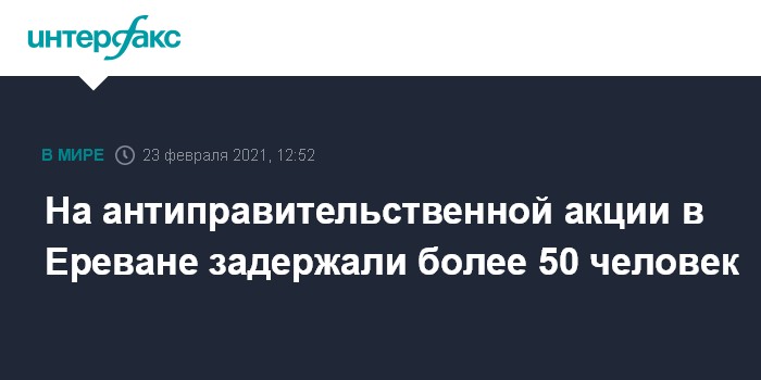 Москва. 23 февраля. INTERFAX.RU - Оппозиция Армении завершила акцию протеста у комплекса правительственных зданий в центре Еревана с требованием отставки премьера республики Никола Пашиняна.