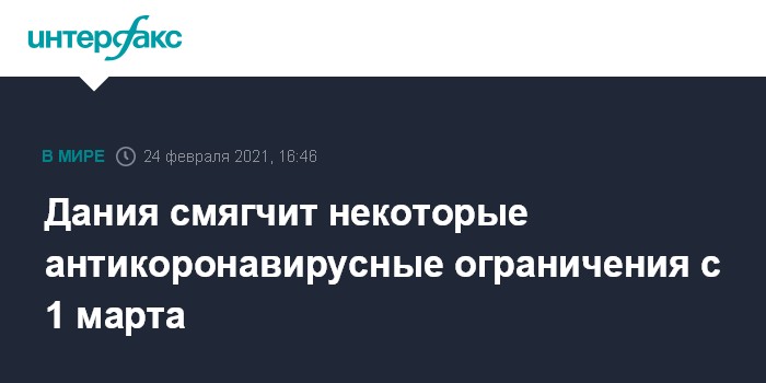 Дания смягчит некоторые антикоронавирусные ограничения с 1 марта