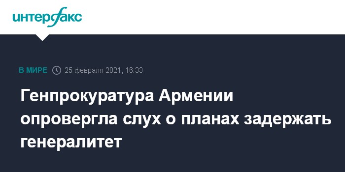 Генпрокуратура Армении опровергла слух о планах задержать генералитет