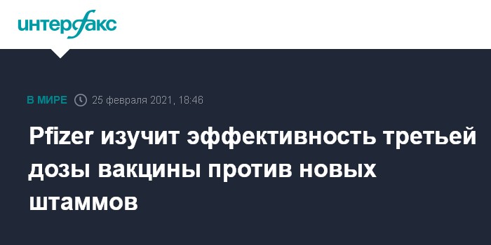 "Pfizer и BioNTech сообщили, что приступили к оценке безопасности и иммуногенности третьей дозы вакцины от COVID-19, чтобы понять воздействие дополнительной дозы на иммунитет от заражения COVID-19, вызванного распространяющимися и потенциальными новыми возникающими вариантами SARS-CoV-2", - говорится в опубликованном Pfizer пресс-релизе.