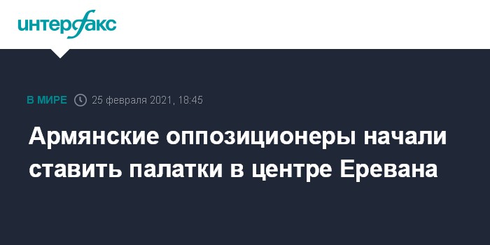 Москва. 25 февраля. INTERFAX.RU - Оппозиция Армении устанавливает палатки на центральном проспекте Баграмяна в Ереване.