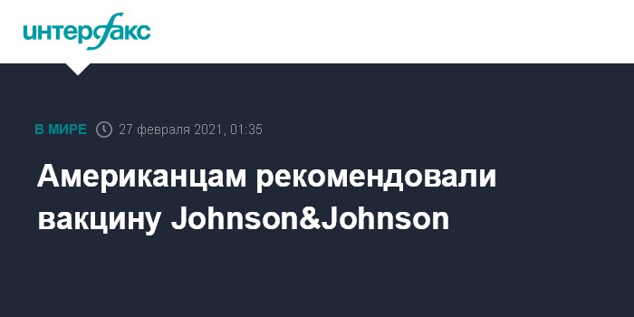 Москва. 27 февраля. INTERFAX.RU - Консультативный комитет FDA по вакцинам и соответствующим биологическим продуктам рекомендовал экстренное применение однодозовой вакцины компании Johnson&Johnson от COVID-19, сообщают американские СМИ.