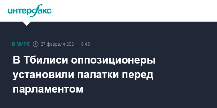 Москва. 27 февраля. INTERFAX.RU - Сторонники грузинской оппозиции, прибывшие в Тбилиси накануне из регионов, установили на небольшой площади перед парламентом 11 палаток и провели в них ночь.