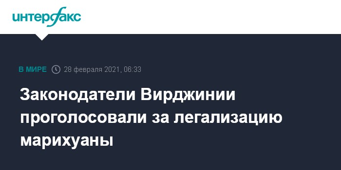 Агентство отмечает, что Вирджиния стала первым южным штатом, проголосовавшим за легализацию марихуаны. Теперь законопроект будет передан на подпись губернатору-демократу Ральфу Нортэму, поддерживающему легализацию.