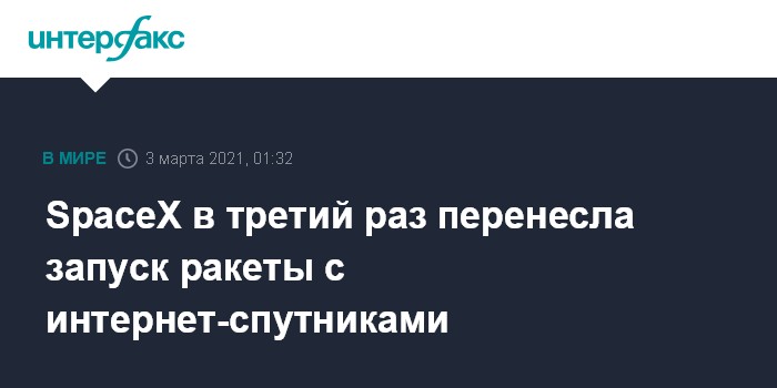SpaceX в третий раз перенесла запуск ракеты с интернет-спутниками